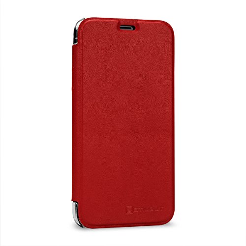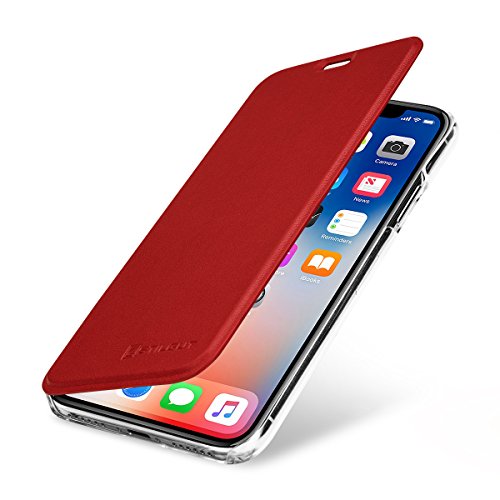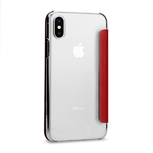 StilGut Custodia Compatibile con iPhone X con NFC/RFID Blocker in plastica Trasparente con Patta in Pelle Nappa. Rosso/Trasparente
