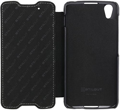 StilGut Book Type Case, custodia in pelle cover per BlackBerry DTEK50. Chiusura a libro Flip-Case in vera pelle, Nero