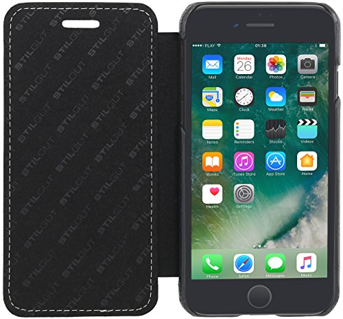 StilGut Book Type Case, custodia in pelle cover per iPhone 7 Plus (5,5"). Chiusura a libro Flip-Case in vera pelle, Nero