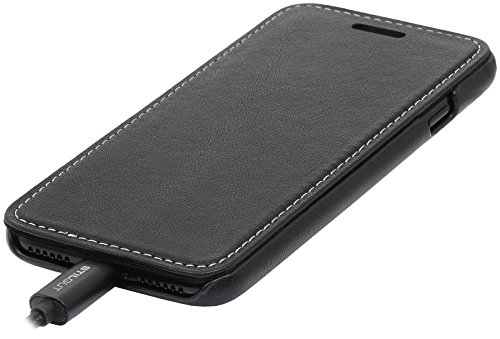 StilGut Book Type Case, Custodia in Pelle Cover per iPhone 7 Plus (5,5"). Chiusura a Libro Flip-Case in Vera Pelle, Nero Nappa