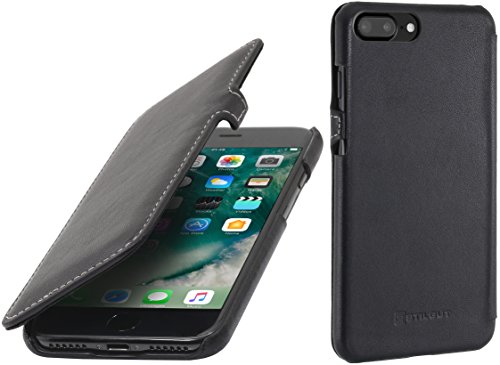 StilGut Book Type Case con clip, custodia in pelle cover per iPhone 7 Plus & iPhone 8 Plus (5,5") Chiusura a libro Flip-Case in vera pelle, Nero Nappa