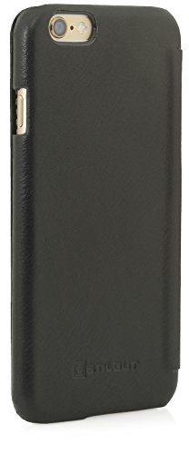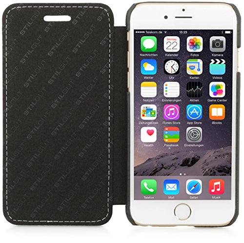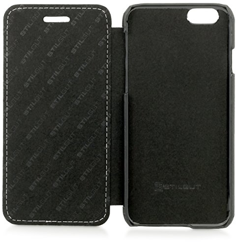 StilGut Book Type Case, Custodia in Vera Pelle a Libro con Apertura Laterale per Apple iPhone 6s (4.7''), Nero Nappa