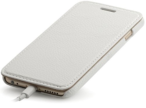 StilGut Book Type Case, Custodia in Vera Pelle a Libro con Apertura Laterale per Apple iPhone 6s (4.7''), Bianco
