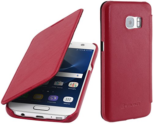 StilGut Book Type Case, custodia in pelle per Samsung Galaxy S7, rosso nappa