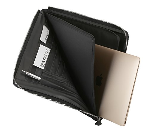 StilGut Portadocumenti, a tracolla in vera pelle per tablet 12,9", Nero Nappa