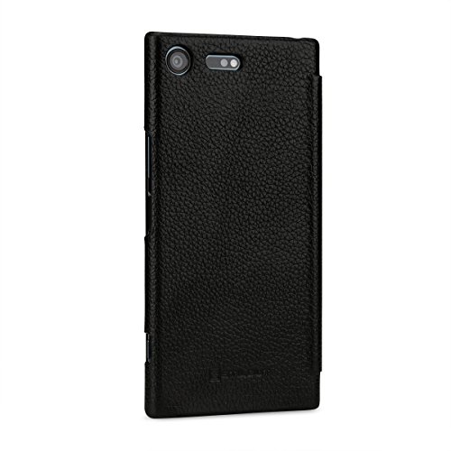 StilGut Book Type Case senza Clip, custodia booklet a libro apertura laterale in vera pelle per l'originale Sony Xperia XZ Premium con funzione on/off integrata, Nero