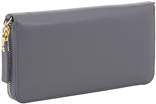 StilGut Smart Wallet in pelle - elegante clutch, portafoglio, custodia per smartphone e borsa a tracolla, Grigio Nappa