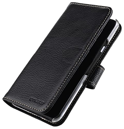 StilGut Talis cover compatibile con Google Pixel 4a 4G custodia a portafoglio in pelle con funzione supporto, chiusura magnetica & scocca trasparente - nero