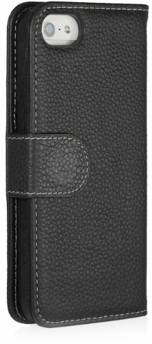 StilGut Talis V2, custodia in vera pelle per Apple iPhone 5, iPhone 5s & iPhone SE con tasche per carte di credito, biglietti da visita e banconote, nero