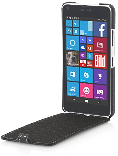 StilGut UltraSlim Case, Custodia in Pelle per Microsoft Lumia 640 (Compatibile con i Modelli in Nero e in Bianco), Nero