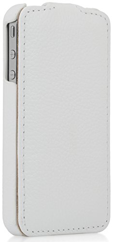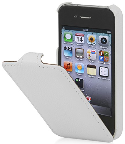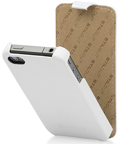 StilGut UltraSlim, Esclusiva Custodia in Vera Pelle per Apple iPhone 4 & iPhone 4s, Bianco (Pelle granulata)