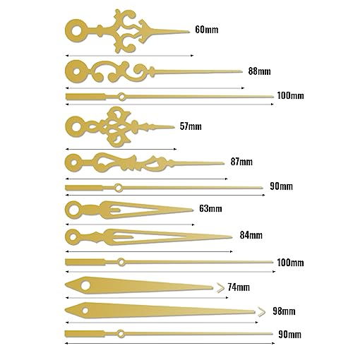 Dettagli sulle dimensioni: che si tratti di lancette delle ore o dei minuti, esse forniscono un'indicazione precisa dell'ora, consentendo di valutare facilmente il trascorrere del tempo. Adatte per orologi di lunghezza compresa tra 10 e 14 pollici, per informazioni più dettagliate sulle dimensioni consultare la sezione dei dettagli del prodotto per assicurarsi che le lancette scelte si adattino perfettamente al proprio orologio.