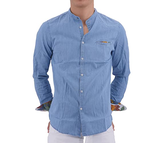 STILL Camicia Uomo Jeans Collo Coreano Casual New Moda Primavera Estate H003BCA L Blu Denim