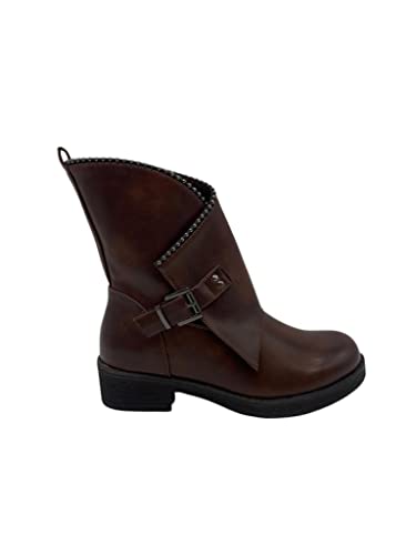 STILL Scarpe Stivali Donna Tronchetto Nero Tacco Basso Biker Motociclista Moda Nuovi CR0608 (Camel, Numeric_38)
