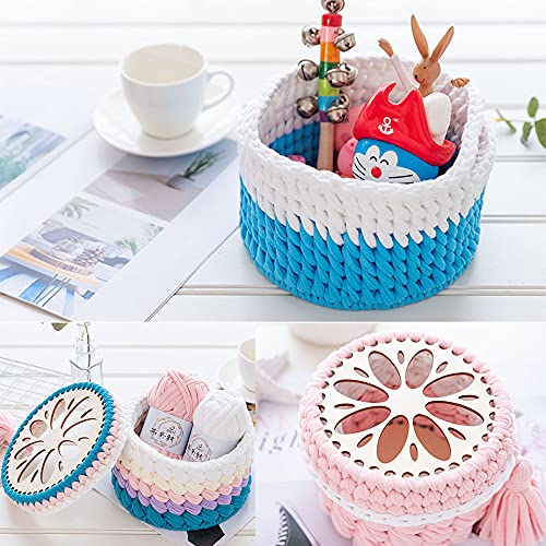 Fondo del cesto e coperchio del cesto personalizzati 2 fondi del cesto in legno cavi circolari, stile petalo e semplice motivo circolare, possono essere combinati per lavorare a maglia una scatola portaoggetti, una borsa, usa la tua immaginazione per il fai da te (esclusi altri accessori)