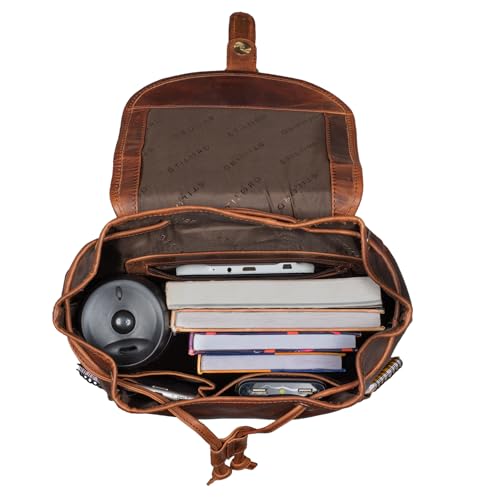 TUTTO A COLPO D'OCCHIO: Dimensioni (LxWxH): circa 27 x 13 x 30 cm | Modello: 'Allison' | Materiale: vera pelle | Tipo di pelle: vacchetta | Peso: 920 grammi | Produttore: STILORD | Spazio per documenti DIN A5 nello scomparto principale | Scomparto principale (non imbottito) di circa 20 x 25 cm per iPad 9.7 pollici o Samsung Galaxy Tab S 10.5 pollici