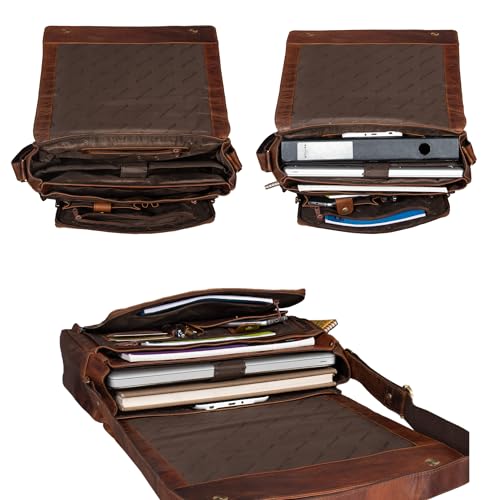 Borsa messenger uomo e donna in pelle | Grande borsa a tracolla porta documenti e PC in vero cuoio | stile vintage
