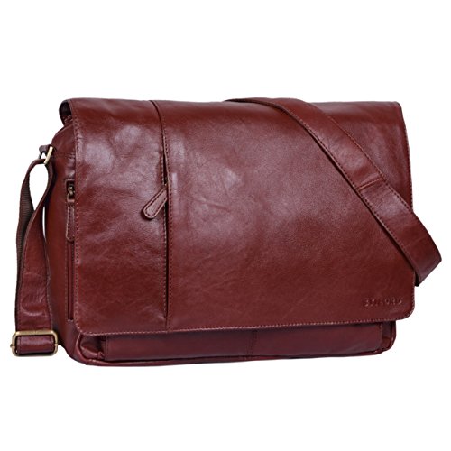 STILORD Borsa messenger in pelle da uomo donna Borsa a tracolla da studente insegnante professore maestra Portadocumenti per PC da 15,6 pollici in vera pelle, Colore:rosso - marrone