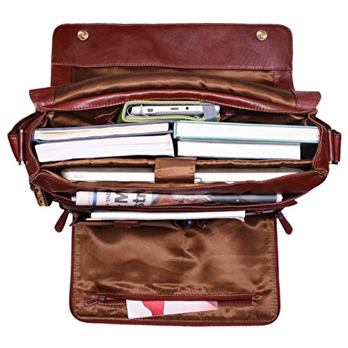Dimensioni esterne: 41 x 33 x 13 cm (LxHxP) | Scomparti totali: 7 | Colore: rosso marrone | Peso: 1120 g | Materiale: vera pelle di bufalo | adatta per laptops fino a 15.6 pollici (38,5 x 26 cm)