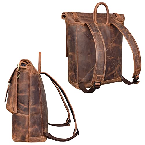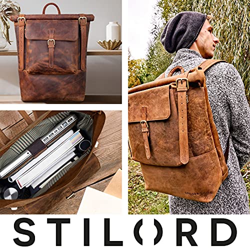 STILORD 'Chris' Zaino Pelle Grande con Parte Superiore Arrotolabile Roll Top Scomparto per Laptop Vintage, Colore:prato - marrone