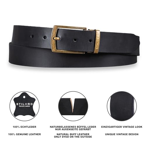 STILORD Cintura Uomo Nera in Pelle Vera Accorciabile Lunga 130 cm Robusta Cuoio Elegante con Scatola Stile Vintage Taglia Universale, Colore:fibbia antica - bronzea I