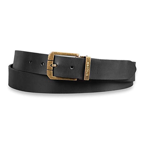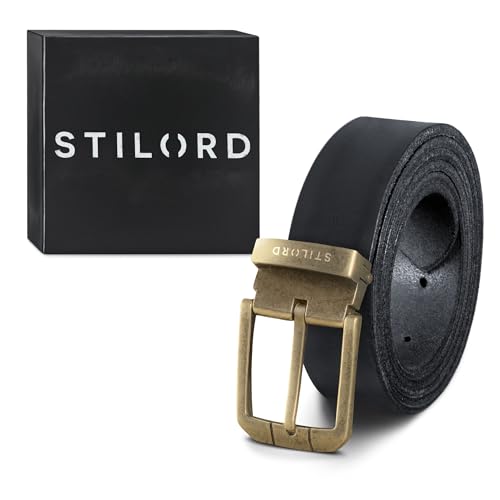 STILORD Cintura Uomo Nera in Pelle Vera Accorciabile Lunga 130 cm Robusta Cuoio Elegante con Scatola Stile Vintage Taglia Universale, Colore:fibbia antica - bronzea V