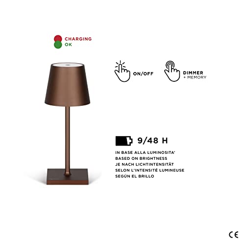 Stilosa Mini - Lampada Ricaricabile da Tavolo senza fili - Luce LED Regolabile (Dimmer) con il Tocco - Casa e Ristorante - USB C - Lunga Durata - IP54 Uso Interno ed Esterno - Bronzo Oxide