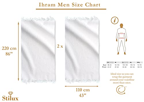 Stilux Set da uomo Ihram Ehram Ahram per Hajj e Umrah, 1300 g, 2 asciugamani bianchi 110 x 220 cm, 100% cotone naturale, igienico, comodo e ad asciugatura rapida