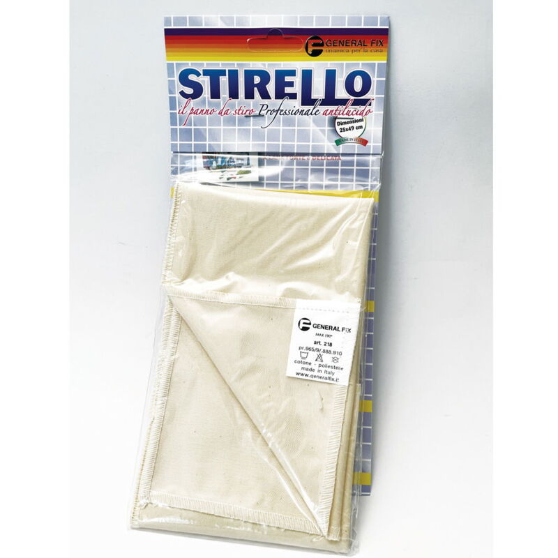 Stirello Panno da stiro professionale antilucido Marca: General Fix Dimensioni: 25 x 49 cm Stirello è un panno per stirare, da un lato tutto cotone, dall'atro tutto nylon. La retina di nylon infatti trasmette calore e fa passare il vapore creando un'intercapedine tra il ferro da stiro e il capo da stirare, evitando il lucido anche dopo molte stirature. Stirello è studiato per trattare con cura i pantaloni del vostro uomo o la gonna che tanto vi piace. Il panno si usa stendendolo con la retina a contatto del capo da stirare e il cotone verso l'altro dove appoggerete il ferro da stiro. Composizione: Tela 100% Cotone, Rete 100% Poliammide.