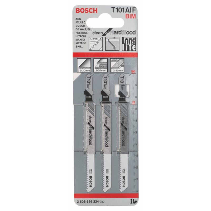 Stitch Sew Blade T 101 AIF pulito per legno duro. La AIF T 101 pulita per la lama di sega a punto in legno duro rende tagli diritti puliti in legno. I denti a terra di precisione con corpo di sospensione conica tagliano puliti. La barra dentata HSS indurita (acciaio ad alta velocità) e BIM (Bimetal) è rinforzata con HC altamente elastici (acciaio al carbonio). Cosa fa sì che la foglia tagliasse i materiali duri. Come legno duro e materiali abrasivi a base di legno. Adatto è. La foglia a denti dello spitz riduce il contorno. È dotato di un passo fine dei denti (1,7 mm). Per tagliare sostanze in legno massello con uno spessore da 2 a 30 mm. Per l'uso con Jigsaw con la registrazione a T shaft. Intasamento. Taglio pulito. Contenuto del pacchetto di vendita: 3 pezzi.