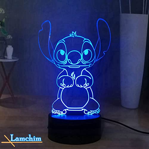 Stitch LED Night Light, Stitch 16 colori 3D Visual Desk Lamp Decor, Touch Remote Kids Night Lamp USB Powered, Teens New Year Christmas Moon Light Con7 colori che cambiano luce notturna