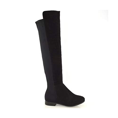 Stivale Donna Nero Finto Scamosciato sopra al Ginocchio Elasticizzato Stretch Zip Taglia EU 41