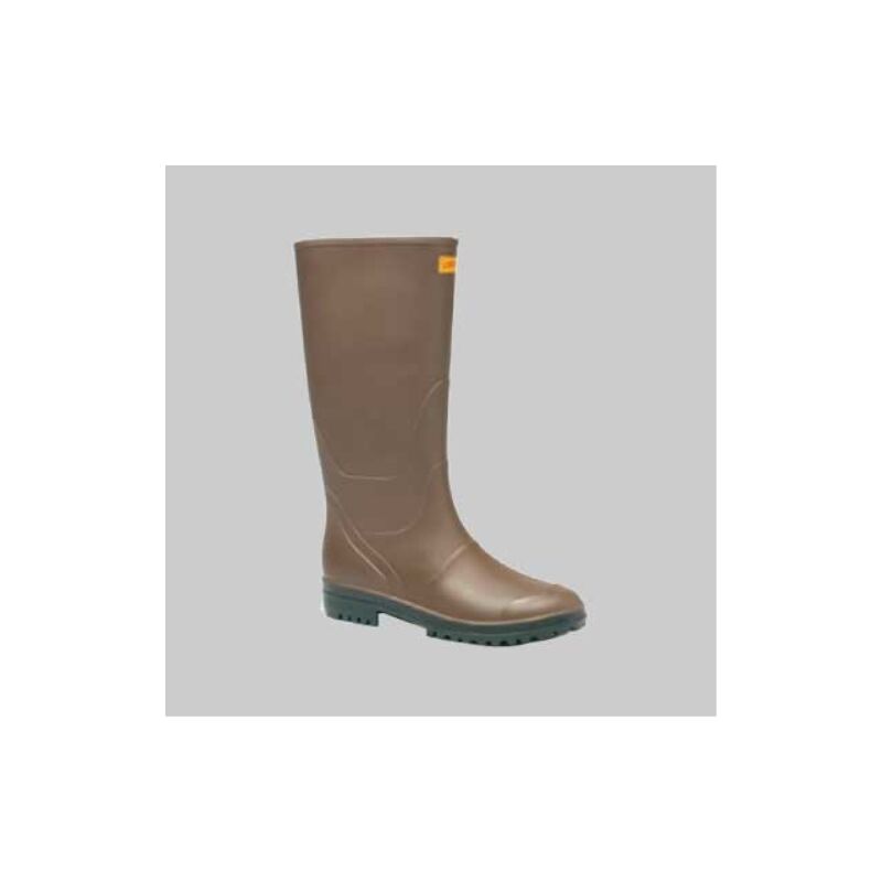 In gomma nitrilica colore marrone. Fodera interna in tela di cotone. Suola carrarmato colore nero resistente agli oli e carburanti. Stivale in gomma mod. 'ginocchio' n° 45 Stivali in gomma e pvc