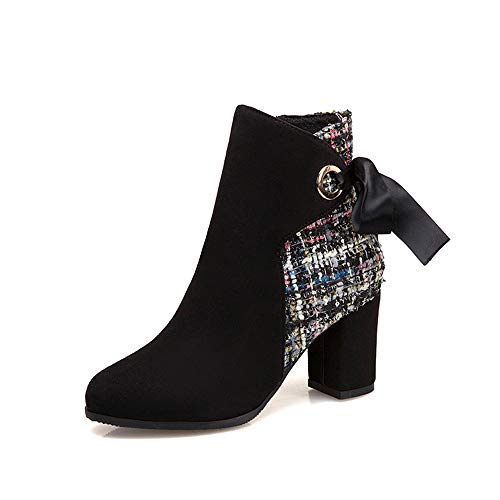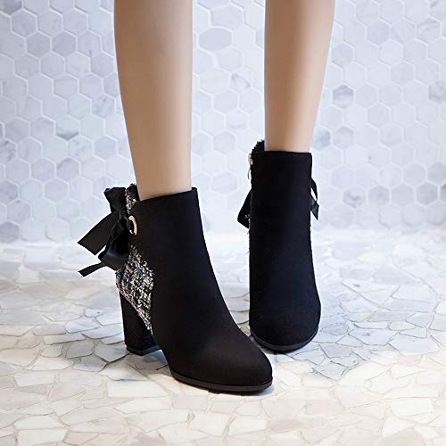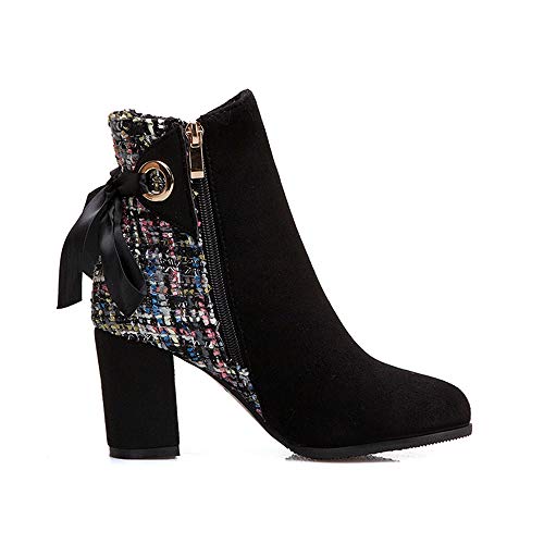 SJJH - Stivaletti da donna eleganti con tacco a blocco, con arco, Nero (Nero ), 33 EU