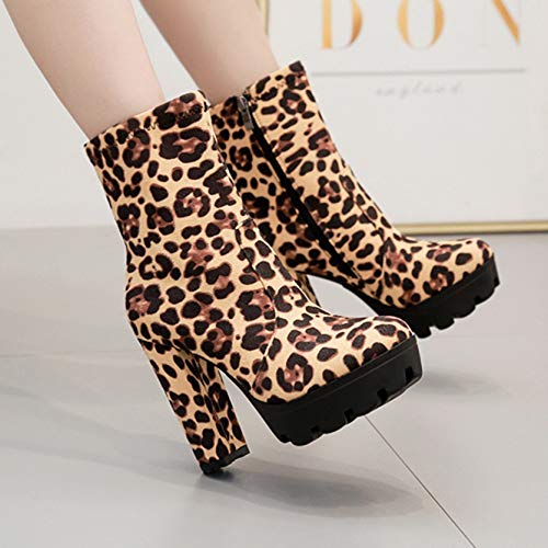 Stivaletti da donna leopardati Moda punta tonda Piattaforma nera Flock Stivali corti da donna Stivali da sposa con tacco spesso e tacco alto