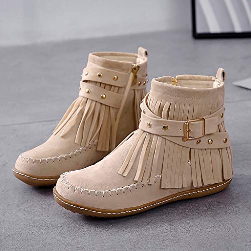 Stivaletti Donna Retro Nappa Pelle Scamosciata Cerniera Piatta Tinta Unita Punta Rotonda Scarpe (42,2Beige)