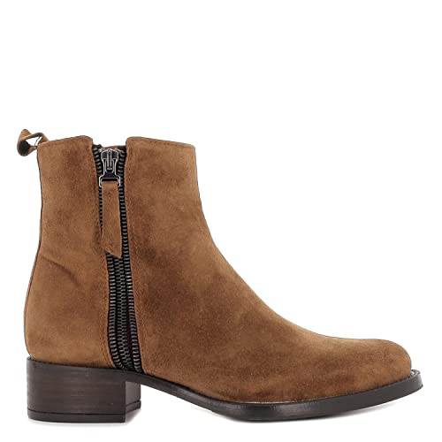 Alpe 2004 - Stivaletti da donna in serraje baby silk, cerniera esterna, CUOIO, 37 EU