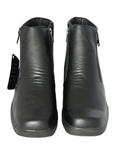Stivaletti da Donna, Stivaletti Tacco a Cuneo Basso, Pelle Sintetica con Chiusura a Doppia Zip (EU 38 UK 5, Nero)