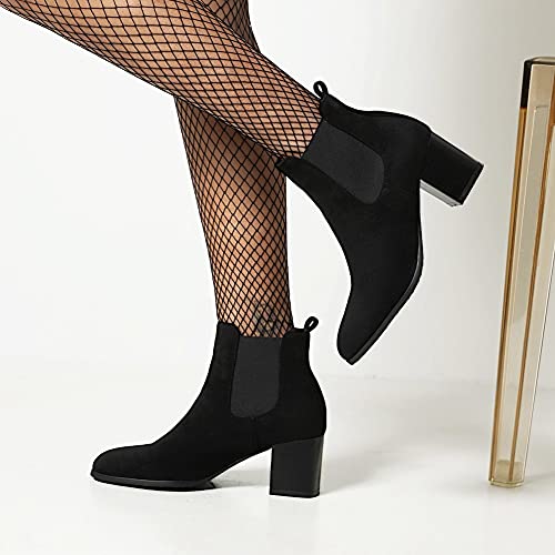 Stivaletti da donna con tacco elastico grosso antiscivolo traspirante comfort invernale Chelsea stivaletti per le donne, a nero, 41.5 EU