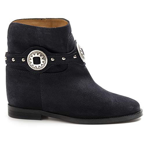 VIA ROMA 15 Stivaletto Blu in camoscio con Zeppa - 3300 Velour Blu - Taglia 37½