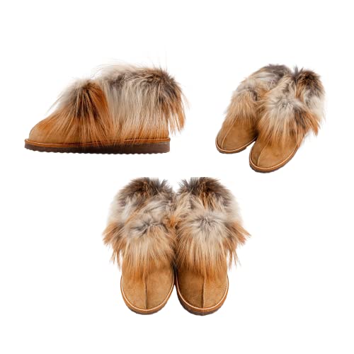 Stivaletto in pelle scamosciato con vera pelliccia di volpe | Art. Monte Rosa | Foderato in vera pelliccia di montone 100% Made In Italy Cammello Taglia 39