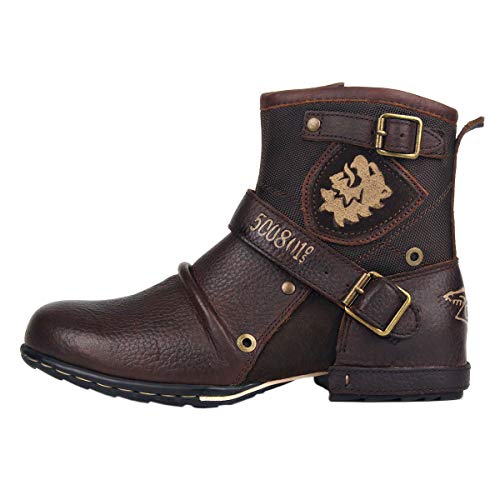 Stivali Cowboy Biker in Pelle Scivolare su Punta Quadrata Lunghezza di Vitello Tacco Western Uomo Stivali Invernali Piatto Caviglia Stivaletti Botas Boots OZ-5008-1-N Taglia 8 US