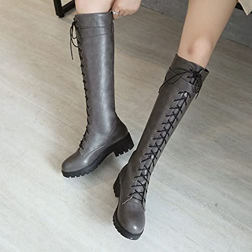 SJJH Stivali alti da donna con lacci e tacco alto, grigio., 34 EU