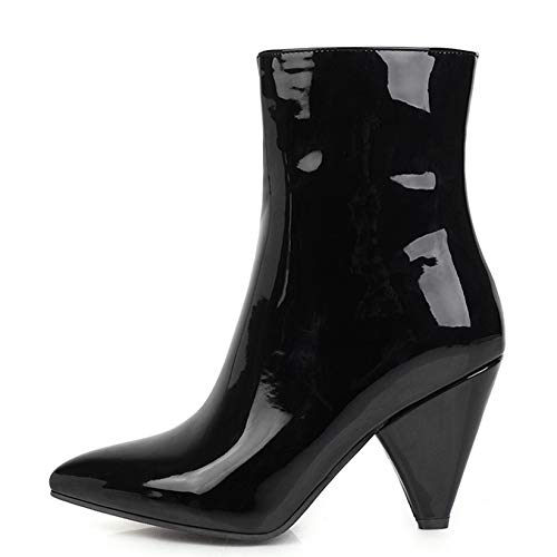 Stivali da donna in pelle verniciata con tacco a cono per banchetti alla moda stivaletti a punta con cerniera autunno inverno stivali da motociclista