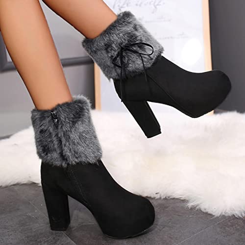 Stivali Donna Moda Piattaforma Impermeabile Testa Tonda Tacchi Alti Cerniera Caviglia (35,Nero)