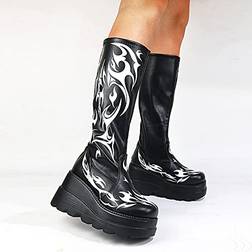 Stivali Donna Moda Scarpe con Zeppa Multicolore con Cerniera Stivali Donna Piattaforma Scarpe Grosse Stivali Casual Zeppe Punk Goth Cerniera Stivali a metà Polpaccio (41,Nero)