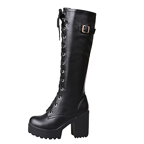 Stivali Donna Stivaletti Donna Impermeabile Piattaforma Stivali Stringati Tacco Alto Stivali con Tacco Grosso (37,Nero)