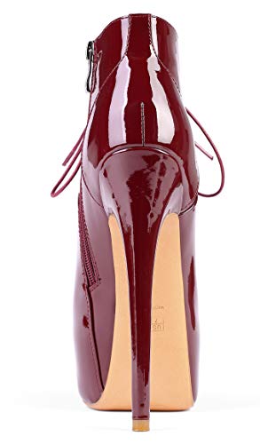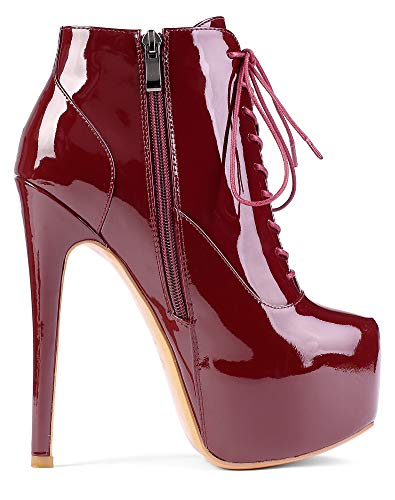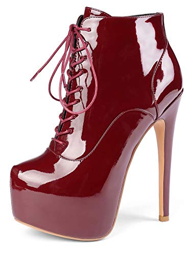 Stivali Donna - 15CM Stivali Donna con Tacco Alto - Stivaletti da donna con Punta Arrotondata - Stivali con Tacco con Lacci - Stivali da Donna in Pelle con Plateau Borgogna EU46