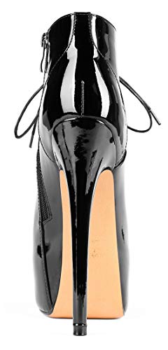 Stivali Donna - 15CM Stivali Donna con Tacco Alto - Stivaletti da donna con Punta Arrotondata - Stivali con Tacco con Lacci - Stivali da Donna in Pelle con Plateau Nero EU39