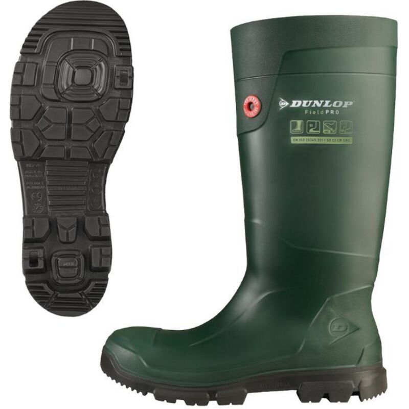 Stivale in gomma Purofort Field PRO Approvazione/Standard: EN ISO 20345:2011. S5 CI CR SRC Design: - Calzata perfetta grazie all'innovativo Snug-fit di Dunlop che impedisce lo scivolamento del tallone - Condizionatamente resistente all'olio. Benzina e acido - Antistatico - Isolamento dal freddo fino a -20 °C Piedi: Soletta Dunlop comfort in PU Suola: Suola in PU resistente agli oli Materiale: Poliuretano espanso Purofort® Sicurezza: Puntale in acciaio. Intersuola in acciaio Colore: verde.